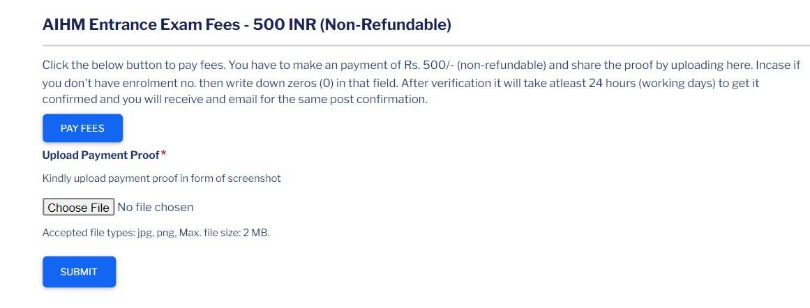 Step 3: Pay AIHM Entrance Exam Application Fee