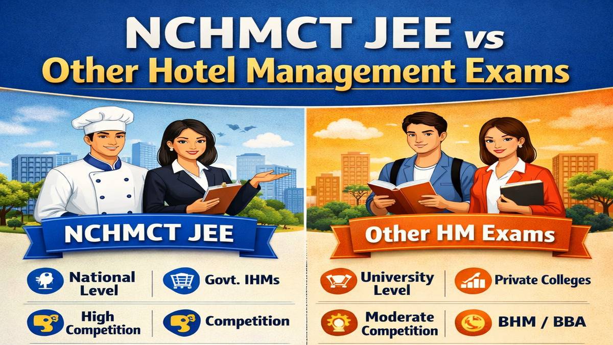 Students often ask which exam is better: NCHMCT JEE entrance or other hotel management exams. Answer depends on your goals, colleges you want to join, and your preparation level. In this article, we will compare NCHMCT JEE vs other hotel management exams, including eligibility, syllabus, difficulty level, and colleges. This comparison will help you choose best exam for your hotel management career.