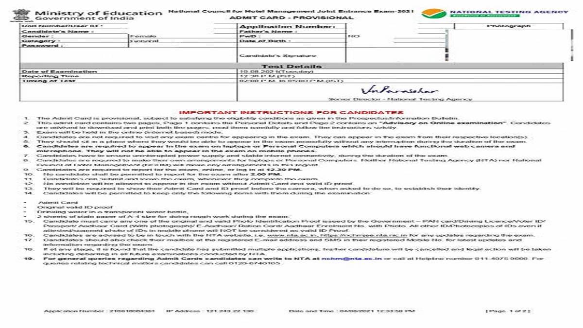 The NCHMCT JEE admit card will not be issued to candidates who have not submitted the NCHMCT JEE application form and paid the examination fee before the last date.
