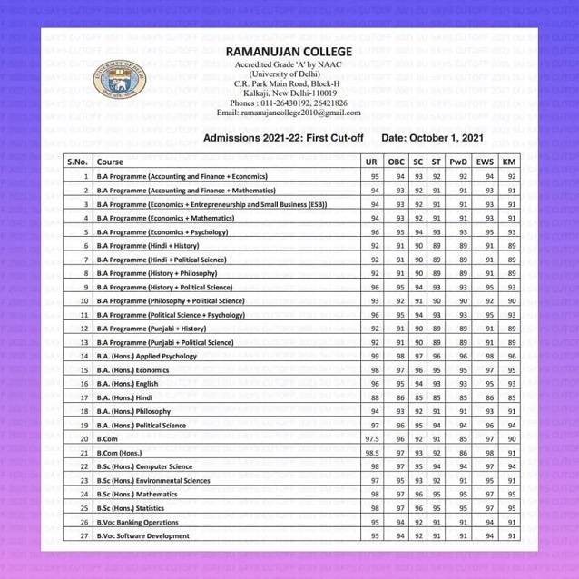 - October 9, 2021 (04:30 pm): Atma Ram Sanatan Dharma College second cutoff 2021 released