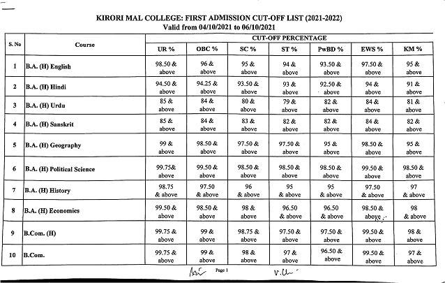 - 04:00 pm: Kirori Mal Colllege 2021 first-cut off list released