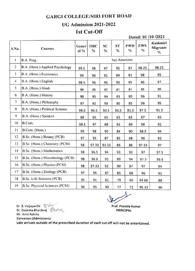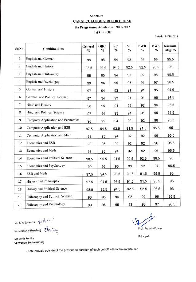 - 04:30 pm: Gargi College 1st Cut off List 2021 Released