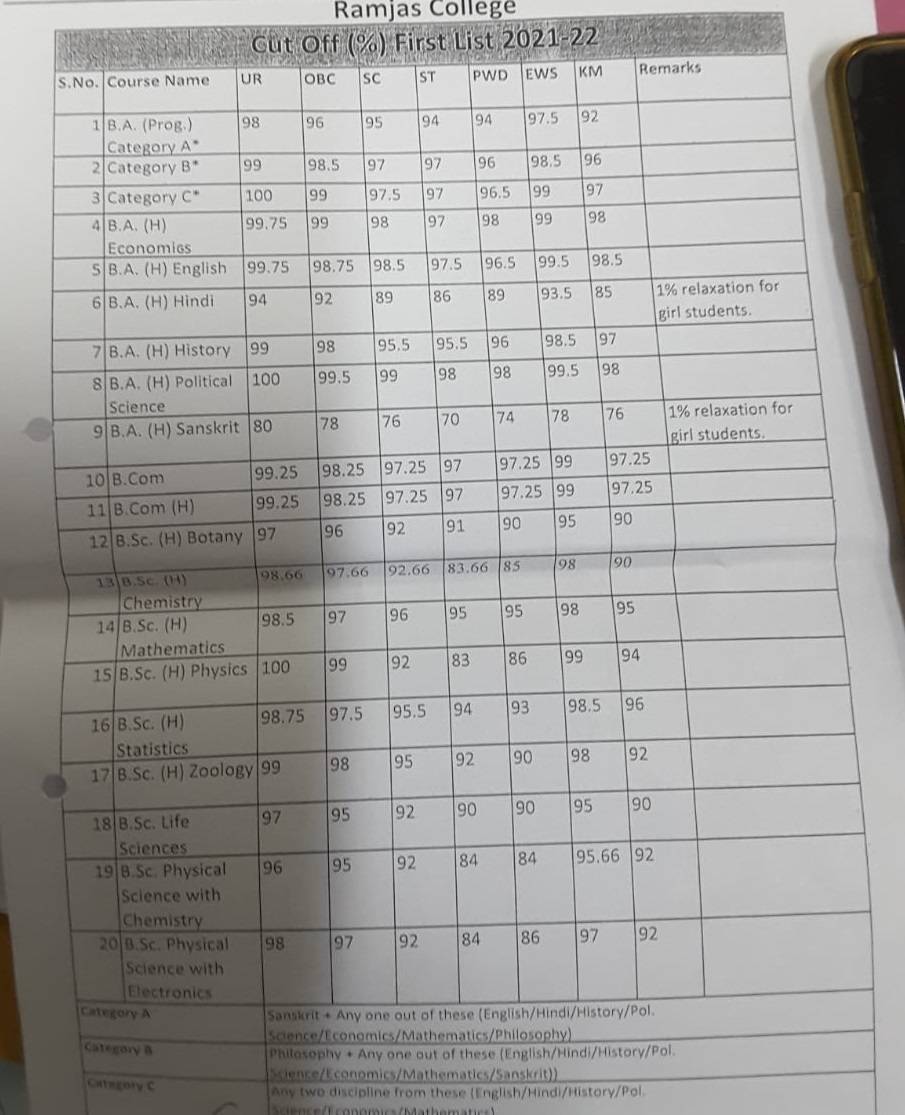 - 04:45 pm: Ramjas College First Cut off List 2021 Released: 100% cutoff set for three courses