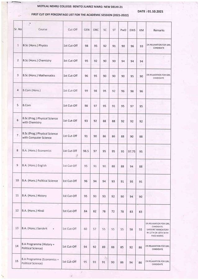 - 05:30 pm: Motilal Nehru 1st Cut off 2021 Released