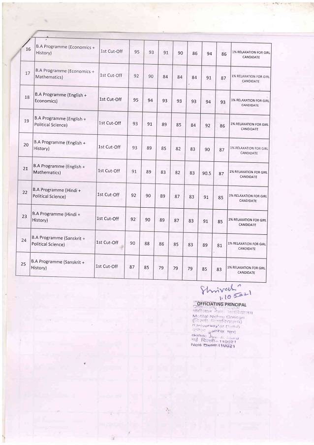 - October 9, 2021 (07:50 pm): Hansraj College 2nd Cut off List 2021