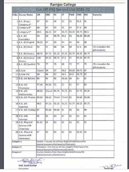 - October 9, 2021 (06:30 pm): Ramjas College 2nd Cutoff 2021 released