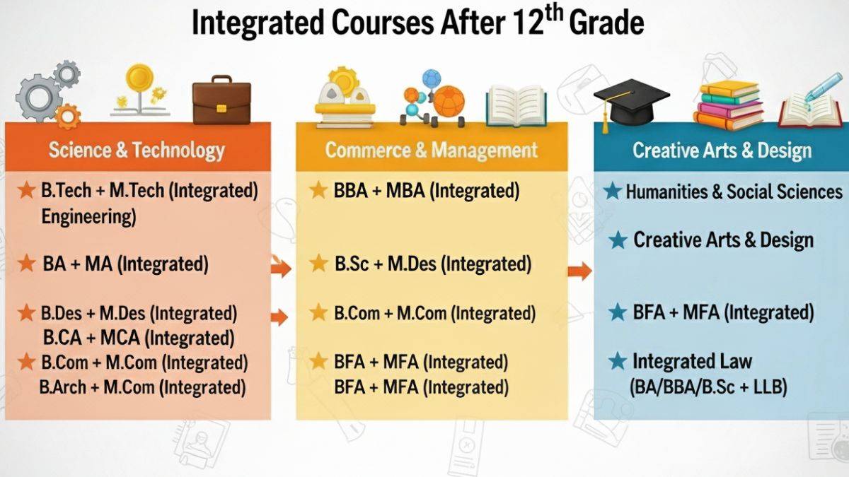 Integrated Courses After 12th: Picking what to do after class 12 can be confusing for many students. There are so many choices that finding the best one matching your interest and career goal becomes tough. Most students still go for the usual way of doing bachelor’s and master’s separately, but Integrated Courses after 12th help you save both time and money. These courses also give you a more practical and job-focused learning path.
