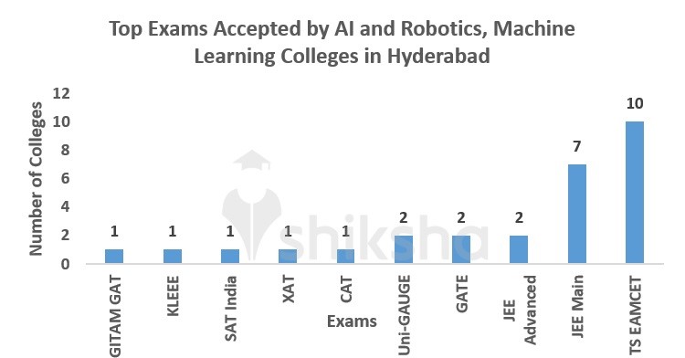 A. Various entrance exams accepted by AI and Robotics, Machine Learning colleges in Hyderabad include TS EAMCET, JEE Main, Uni-GAUGE, GATE, JEE Advanced, GITAM GAT, KLEEE, SAT India, XAT, CAT score, etc.