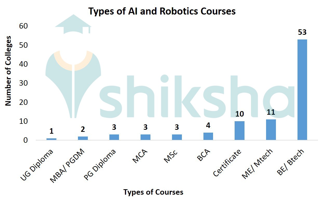 The students have a variety of courses available for pursuing AI and Robotics. BE/ BTech and ME/ MTech is the most preferred UG and PG courses respectively.