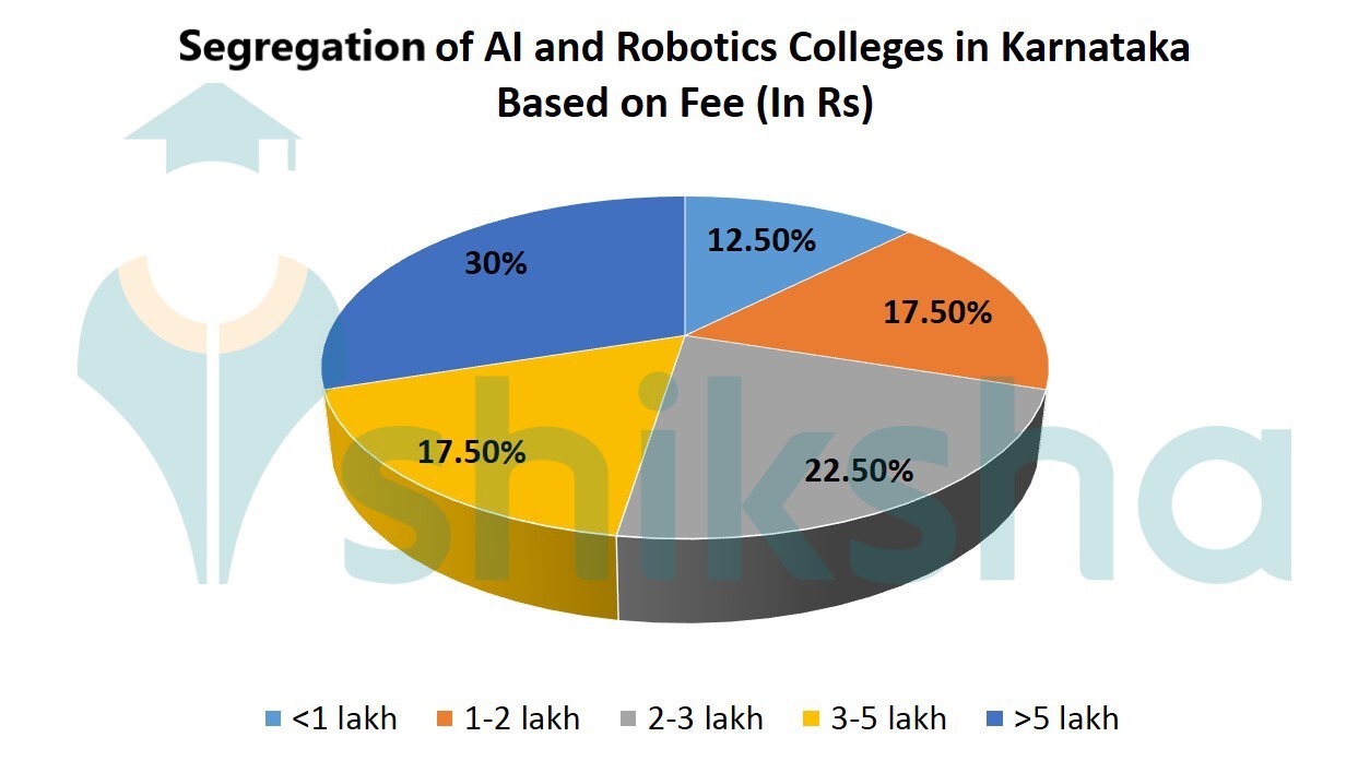 Based on the below pie-chart, it can be estimated that pursuing AI and Robotics from Karnataka is slightly expensive. Nearly, 12.5% of colleges have an annual fee of less than Rs 1 lakh. Some of these colleges are: