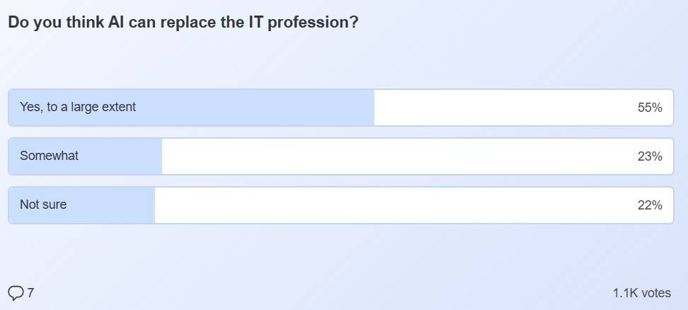 Given the rate at which tech giants all over the world are replacing human professionals with AI, it’s no surprise that most students believe AI can replace much of the IT workforce, especially in areas where tasks are repetitive, rule-based, or highly structured.