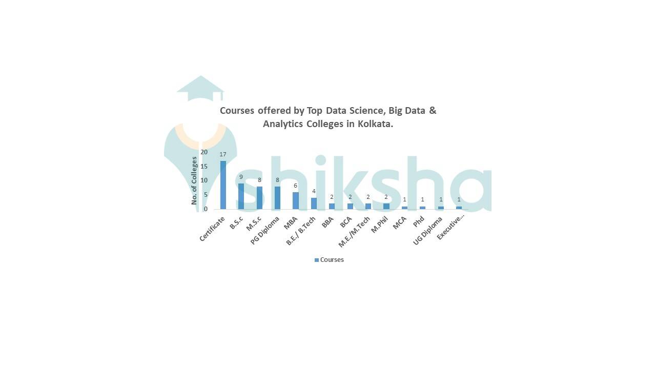 The students can pursue BE/ BTech, BCA, or BBA in Top Data Science, Big Data & Analytics Colleges in Kolkata. Short-term certification and UG and PG diploma courses pursue diploma courses are also available in the Top Data Science, Big Data & Analytics Colleges in Kolkata.
