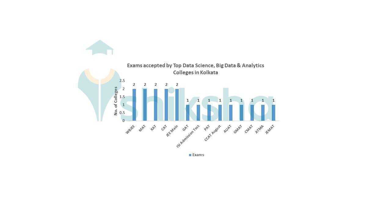 Most of the Top Data Science, Big Data & Analytics Colleges in Kolkata accept WBJEE, MAT, XAT, CAT, JEE Main, GAT, ISI Admission test, PAT, CCAT August, AUAT, GMAT, CMAT, ATMA, JE MAT etc. Students who clear these exams are eligible for further process.