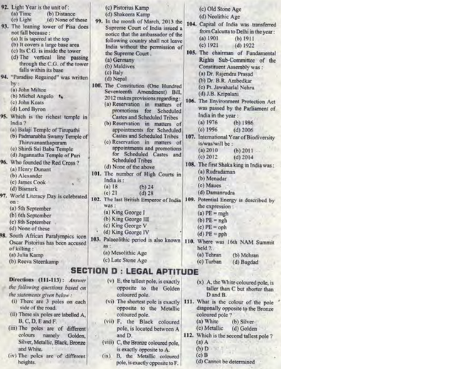 Thus, to know how the exam pattern for CLAT exam is usually like, candidates can view the solved exam paper of CLAT 2013 below.