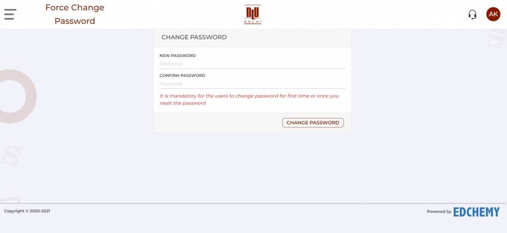 - Candidates will then have to change the password and then candidates will need to select their course of admission.