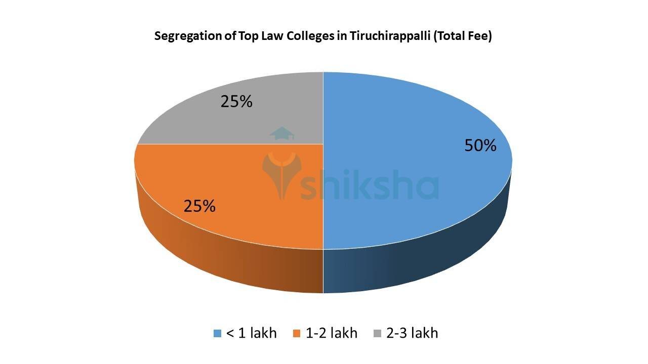 Based on pie chart below, it is estimated that studying law in Tiruchirappalli is affordable. Nearly, 50% of colleges have their annual fee ranging < INR 1 lakh and some of them are: