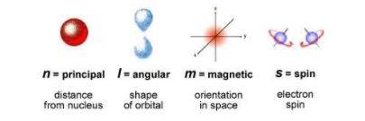 The quantum numbers determine the movement of an electron in an atom. They are used to identify the position and energy of an atom. The sum of all the quantum numbers in all the atoms must comply with the Schrodinger equation. The quantum numbers are classified into four main headings: