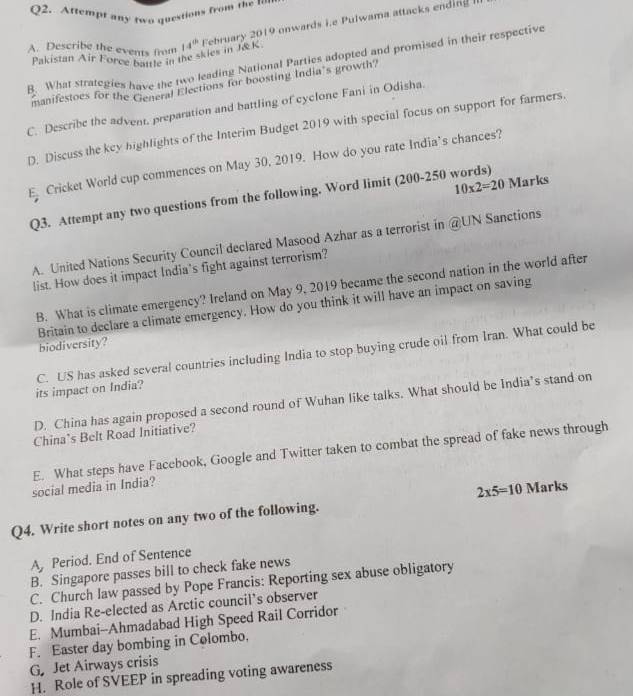 Candidates could attempt the paper easily as most of the questions were from current events. Mostly the questions were precise and engaging. There were a lot of questions in the paper (in the 'short notes section') which dealt with social issues across the globe.