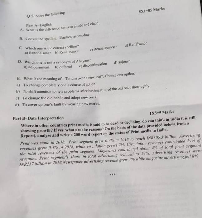 In the Data Interpretation part, candidates were asked about 'print media growth' in India and what could be the declining reasons in other countries of the world.