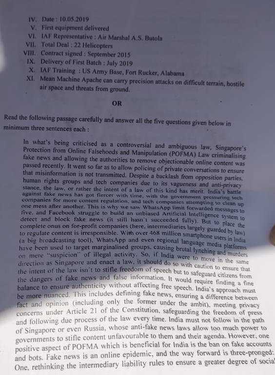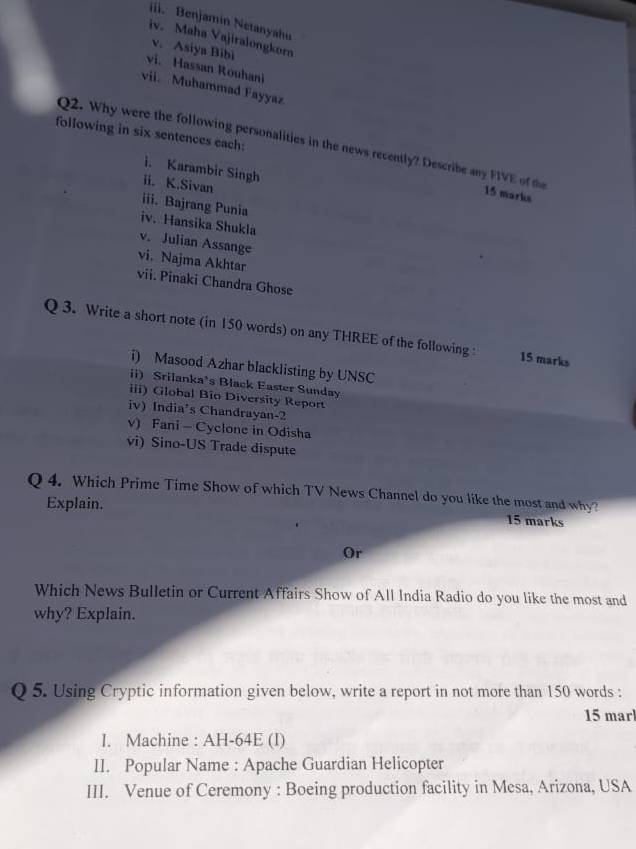 Students were asked to write a short note on the award-winning (Oscar) short movie 'Period. The End of Sentence'. Other questions included social and political issues occurring in the country as well as in other nations.