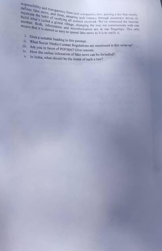 One question of 15 marks was based on writing a synopsis of 'an award-winning Indian film or a review of one of the books within 200 words.