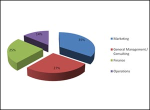Marketing emerged as the most sought-after area with 35% of the batch opting for it. Profiles were offered in Rural Marketing, B2B, Product Development, Market Research, Social Media Marketing and Retail Marketing, etc.