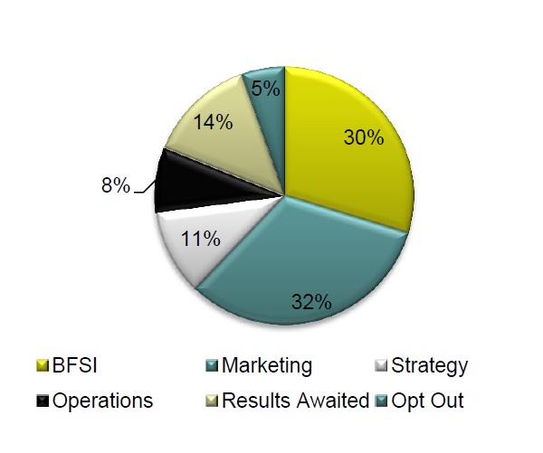 B2B Sales, Brand Management, Business Development, Retail Management and Product Management (About 32% students were placed in this domain) |