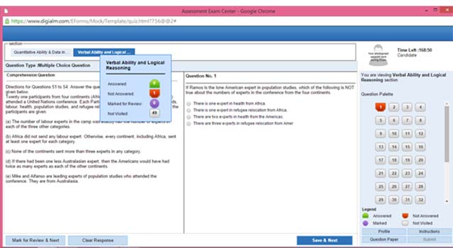 - Violet colour means the candidate has answered a question but can choose to come back to and review it. One can also review the question without answering the question.