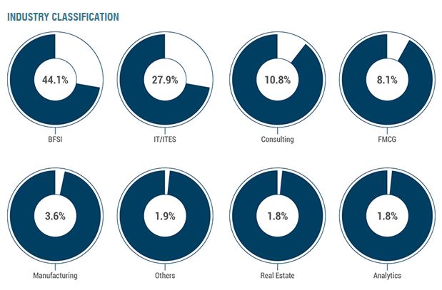 - Industry wise break up of roles offered