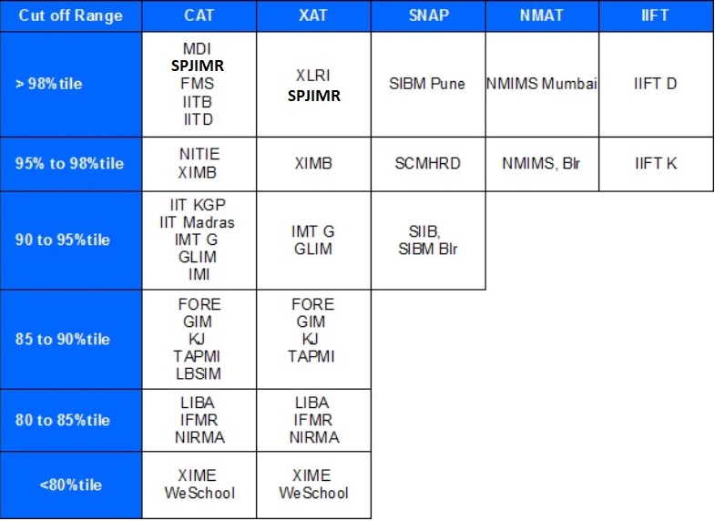 | Cut-off Range | CAT+XAT | 3rd Exam | 4th Exam |