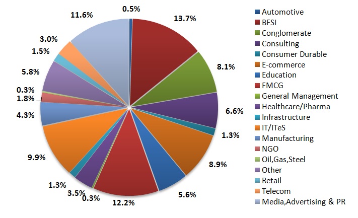 Top recruiters: Airtel, Cognizant Business Consulting, Dabur, Deutsche Bank, eBay, Flipkart, General Electric, Goldman Sachs, HCCB, HSBC, HUL, HCL, ICICI, ITC, JP Morgan Chase, L’Oreal, L&T, Madura, Marico, Mahindra, Philips, PepsiCo, Pidilite, Reliance Industries, RPG, TCS and Vodafone. First time recruiters included CavinKare, Genesis Colors, Jabong, Parle, Saint Gobain. Leading Mexican multiplex chain, Cinepolis offered roles for their India office.
