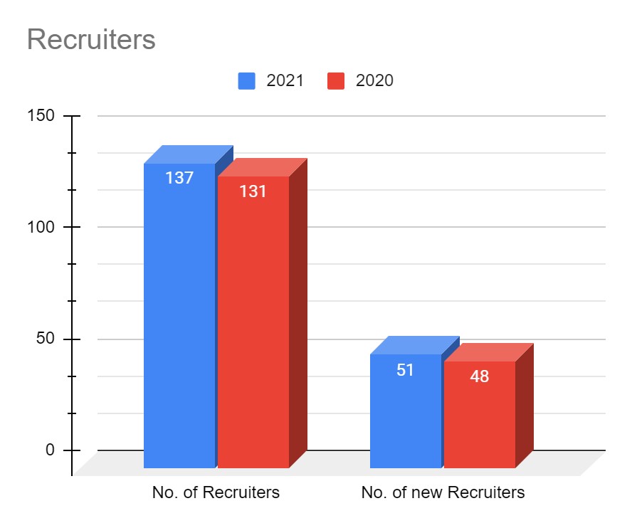 The following graphs depict the number of recruiters in 2020 vis-a-vis 2021.