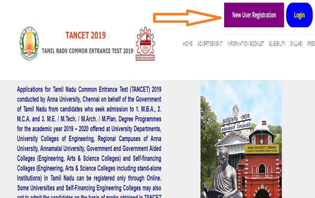 Step 2: In the home page of TANCET 2019, candidates had to click the ‘New User Registration’ tab