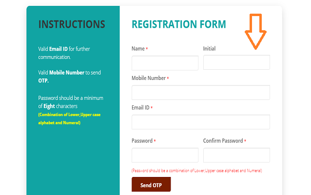 Step 3: Enter name, initials, mobile number, email ID and password. Remember your password should be minimum of eight characters.