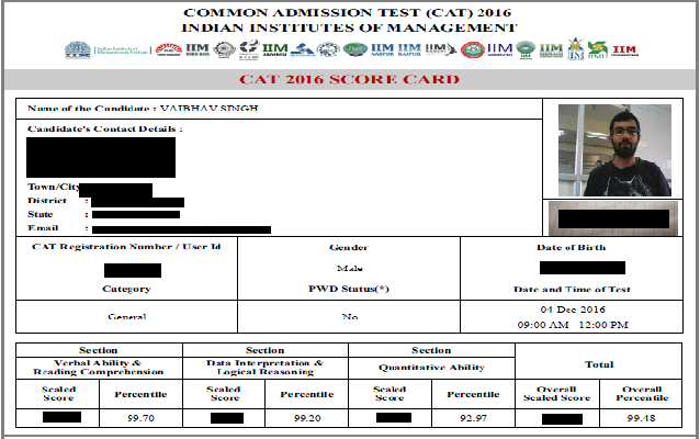 Vaibhav Singh holds a Bachelors in Engineering, and appeared for CAT 2016. With his sectional scores being VARC - 99.70 DI/LR - 99.20, QA - 92.97, he obtained an overall percentile of 99.48. His father is a Civil Servant and his mother is a homemaker.