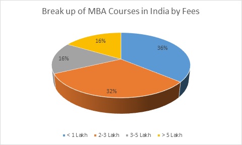 Based on the below pie chart, it can be estimated that pursuing MBA in India is economical as approximately 32% MBA colleges in India are economical with a fee structure of less than Rs 1 lakh. These colleges are: