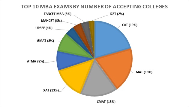 Rest of the colleges accept CMAT, XAT, ATMA, MAH CET, APICET, TSICET, UPSEE, KMAT, etc. for admission into their colleges.