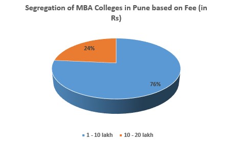 Based on the below pie chart, it can be estimated that pursuing an MBA in Pune from top-rated colleges is moderately-priced. Nearly 76% of the colleges in Pune have a course/annual fee that ranges from Rs 1-10 lakh. Some of these colleges are: