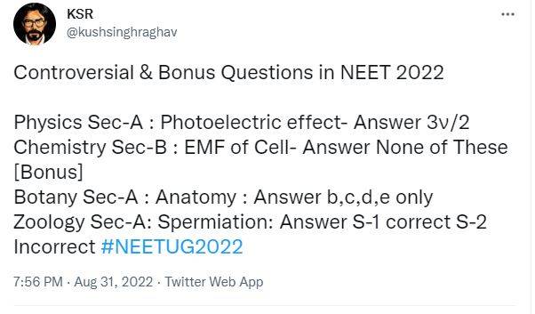 View few more NEET 2022 questions and the objections for those as shared by candidates.
