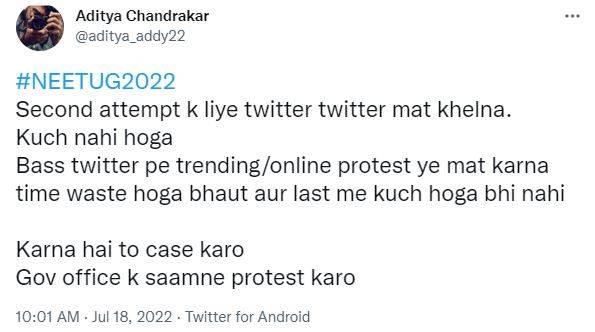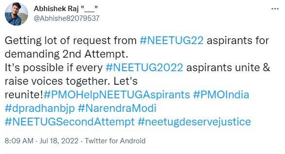 Another advocate Abhishek Raj has also extended his support to the NEET 2022 candidates demanding a retest.