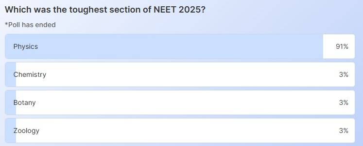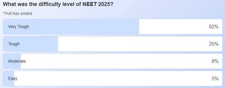 The snapshot below shows the poll question ‘What was the difficulty level of NEET 2025’ along with the answer options and the poll percentages.