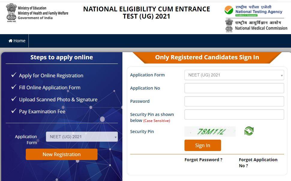 1. Visit the official website of NEET 2021, i.e. neet.nta.nic.in or the direct url https://testservices.nic.in/NEET2021/Root/home.aspx?enc=Ei4cajBkK1gZSfgr53ImFcFR+natXIEjJ1rCf6DMgOrJ4xlKNzYGOuB5dxhm2dDv