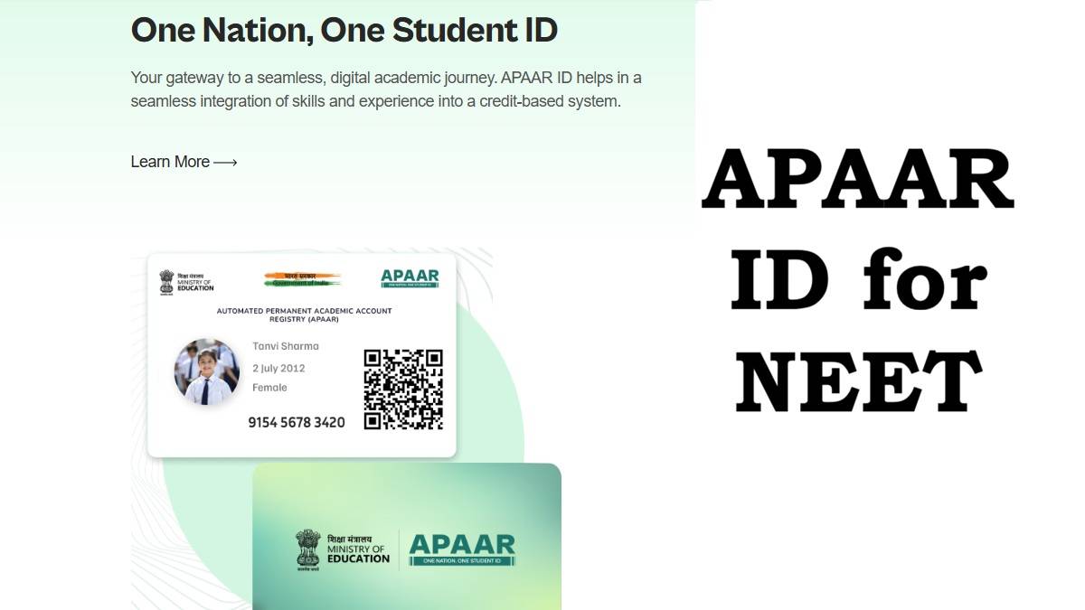 APAAR stands for Automated Permanent Academic Account Registry. APAAR ID is a unique 12-digit code which acts as a permanent digital identity for students using which they can store their academic details such as mark sheets, scorecards, etc. NEET aspitants neeed to link their Aadhaar with the APAAR ID to register for the exam.