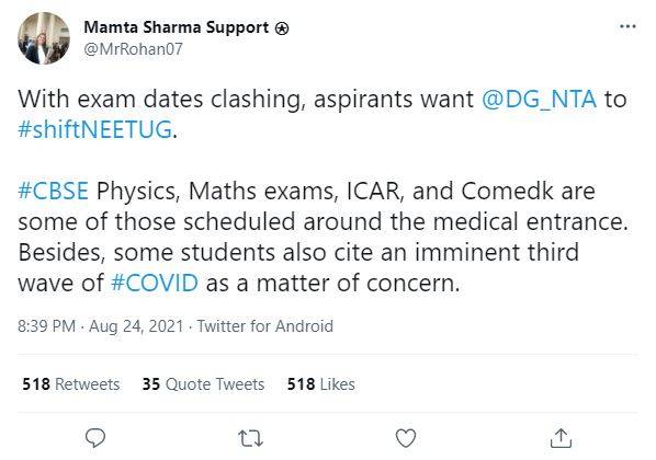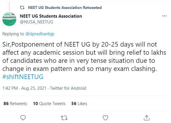 The academic session will not be much impacted: According to the candidates, postponing NEET 2021 by two to three weeks will not bring much delay in the academic session since even the previous academic session commenced in February 2021 and the exam was conducted twice, in September and October (for COVID infected candidates who could not appear on the original exam date).