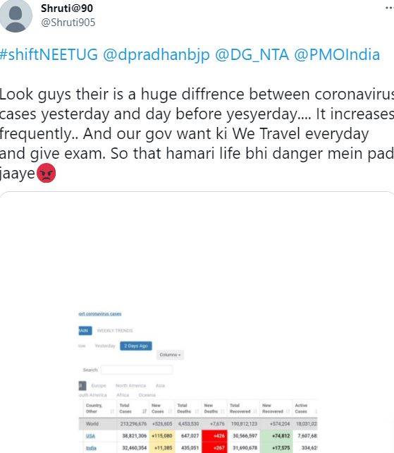 In a bid to raise their concerns and to draw attention towards the National Testing Agency (NTA) and the Ministry of Education, students are trending the hashtags like #ShiftNEETUG and #PostponeNEETUG on the social media platforms like Twitter and Facebook. Sample some of the tweets below.