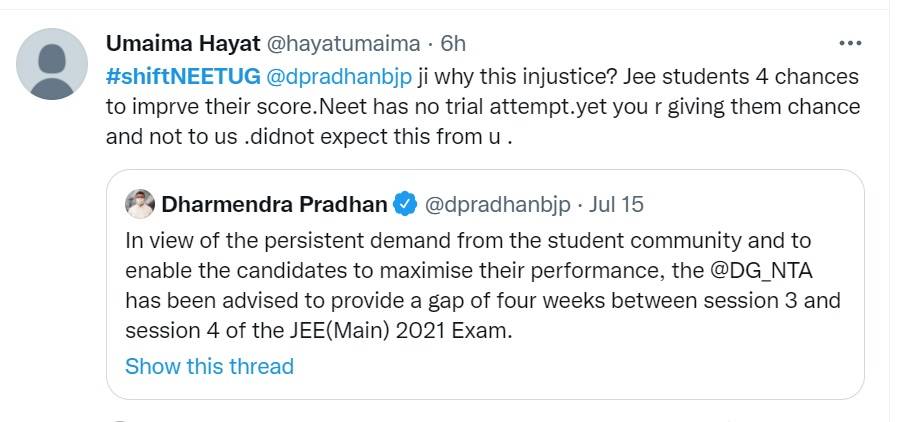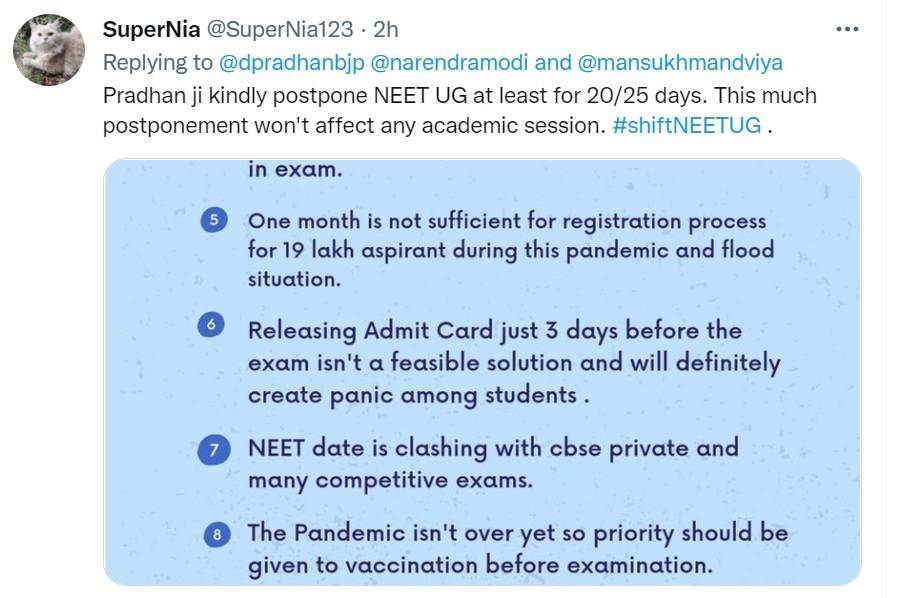 NEET 2021 was postponed from August 1 to September 12, now the students are again demanding on the social media platform to further postpone the exams.