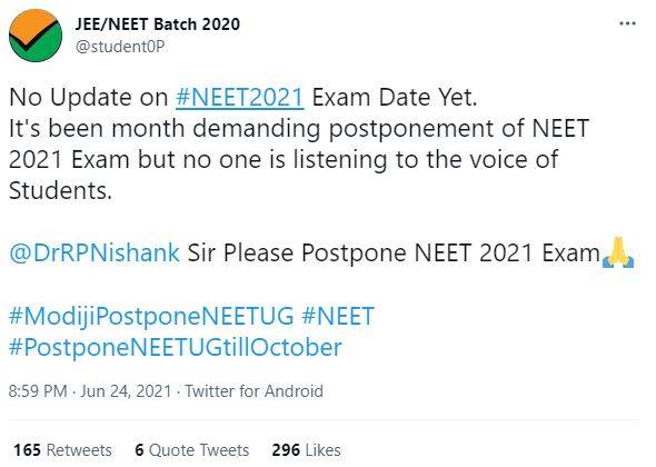 NTA is yet to start the application process for NEET 2021, which is scheduled for August 1. Anxious students are raising their concerns to the officials through various platforms. Know the students’ concerns here.