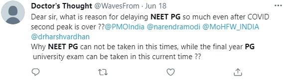 When the final year PG university exam can be conducted in this current time, why NEET PG can’t another aspirant asked.
