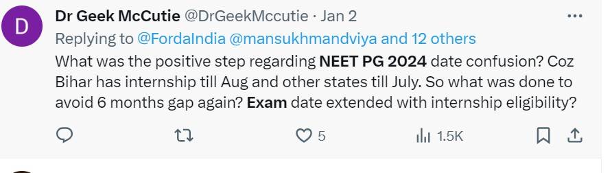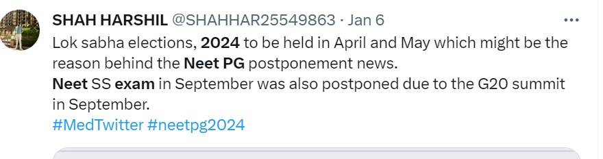 There is a mixed reaction among students regarding NEET PG 2024 postponement reports. Some of them believe that as some states have internship deadline in May or June, that is the reason NBE is thinking to postpone the exam. Lok Sabha election is another reason why the exam conducting body is postponing the NEET PG 2024 date. Lok sabha election is due in April-May 2024.