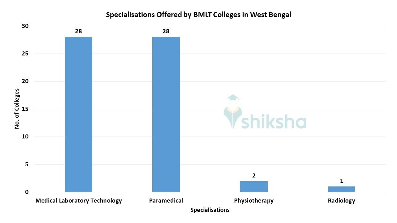 BMLT colleges in West Bengal offer diversified specialisations in Paramedical, Medical Laboratory Technology and Physiotherapy. The most popular ones are Paramedical and Medical Laboratory Technology. Refer to the infographic below for a detailed overview of the top specialisations offered by the top BMLT colleges in West Bengal:
